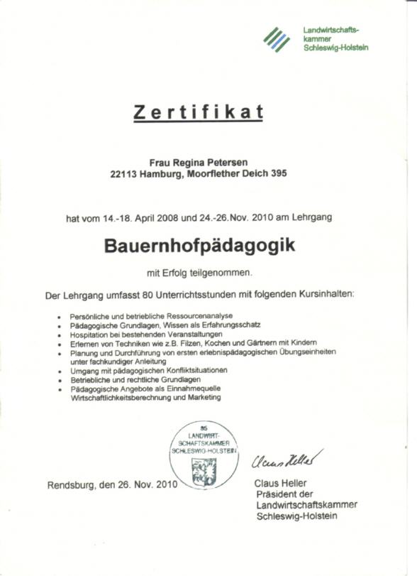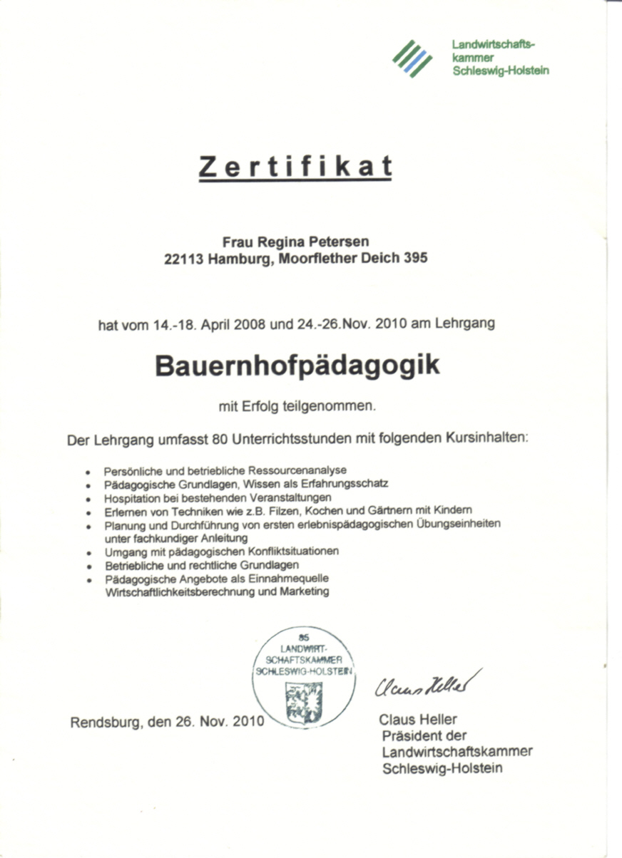 Neben meiner langjährigen Erfahrung mit Kindern habe ich mich im Bereich Bauernhofpädagogik weitergebildet.